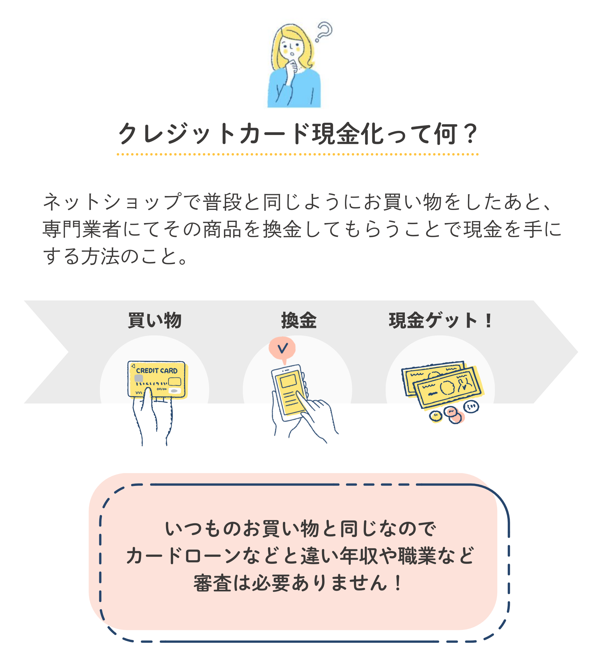 融資(借入)は一切出来ません。現金化のご利用はクレジットカードのショッピング枠で購入した商品を売却して現金を調達する方法となります。